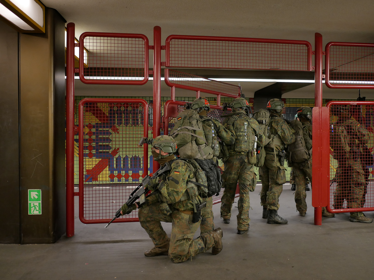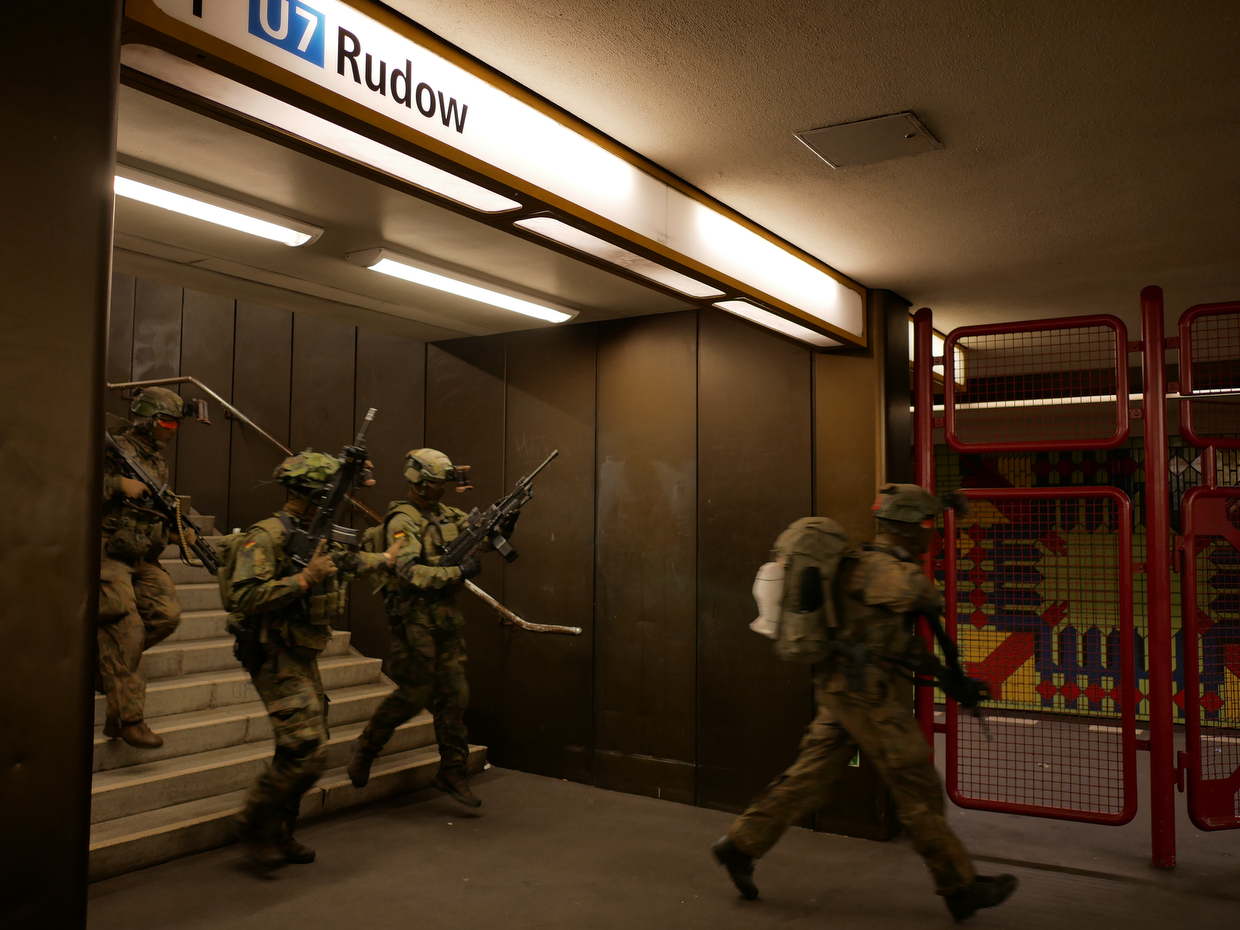 In dieser Woche aber war die Truppe nicht zu übersehen. Unter den realistischen Bedingungen der Großstadt, so erklärte die Bundeswehr in einem eigens gedruckten Flyer, würden Soldaten und Soldatinnen bewusst im öffentlichen Raum üben. Die ausdrücklichen Hinweise auf Scharfschützen am Berliner U-Bahnhof Jungfernheide hatten natürlich auch damit zu tun, dass die Streitkräfte um jeden Preis ein erneutes Desaster wie vor wenigen Wochen im bayerischen Erding vermeiden wollten. Anwohner sollten nicht im Glauben, es seien schwer bewaffnete Banden unterwegs, die Polizei rufen.